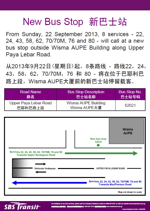 New bus stop for services 22, 24, 43, 58, 62, 70/70M, 76 and 80