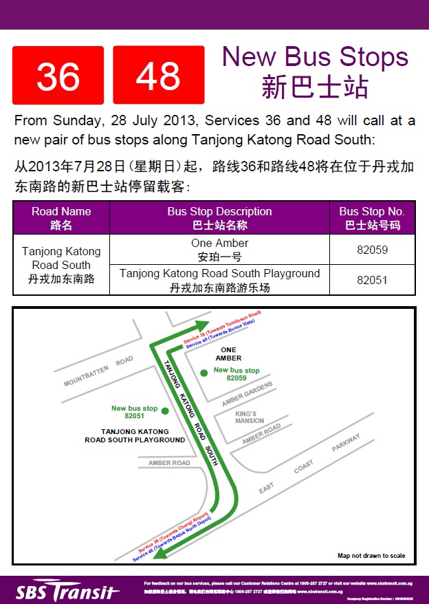 New bus stops for services 36 and 48