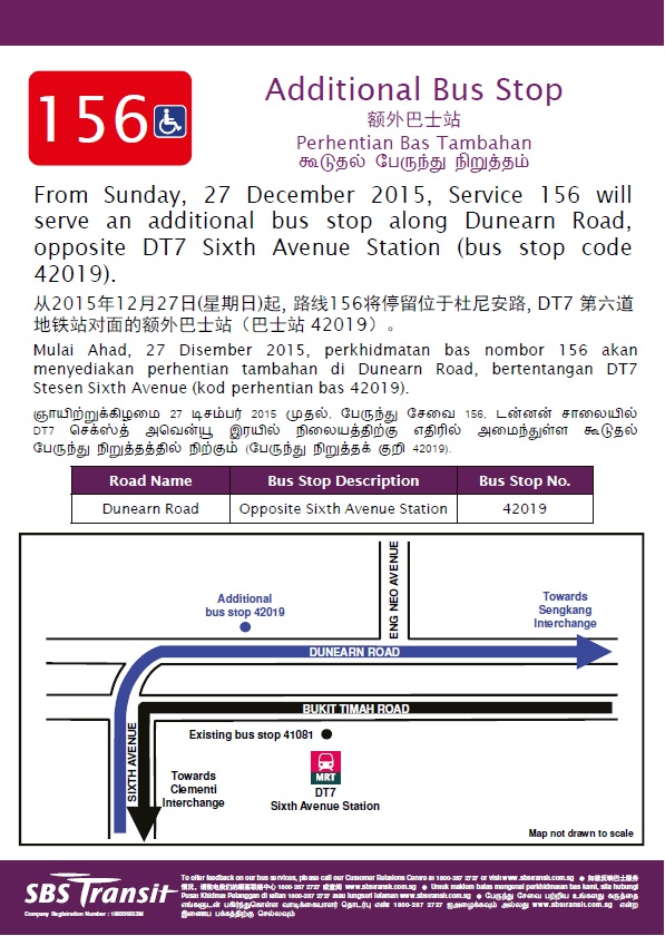 Service 156 will serve an additional bus stop from 27 December 2015