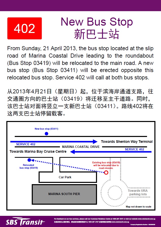 Service 402 - New and relocated bus stops along Marina Coastal Drive