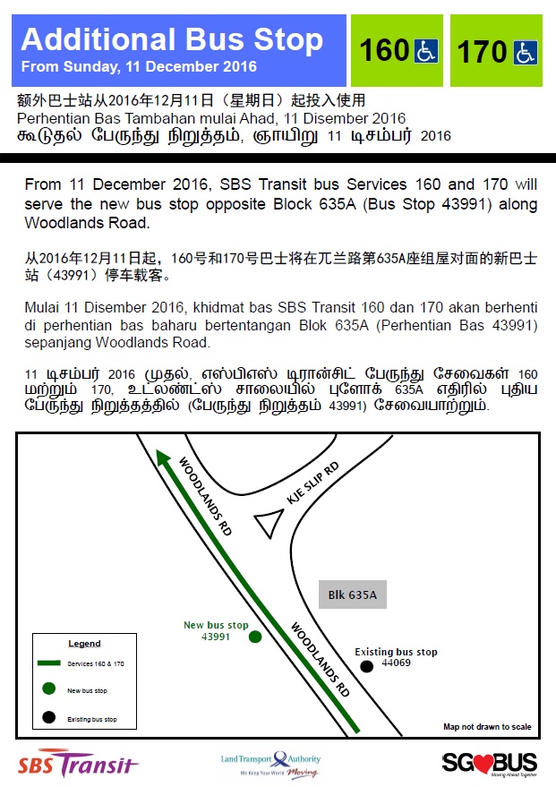 Services 160 and 170 to call at a new bus stop along Woodlands Road